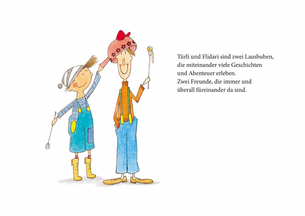 Man kann die Erlebnisse von Türli & Flidari auf tausend Arten erzählen, jede Geschichte klingt anders, je nachdem, wer das Buch in den Händen hält. In den wunderschön kolorierten Zeichnungen sind viele kleine Details versteckt, die jedes für sich wiederum Stoff für eine kleine Erzählung beinhalten.